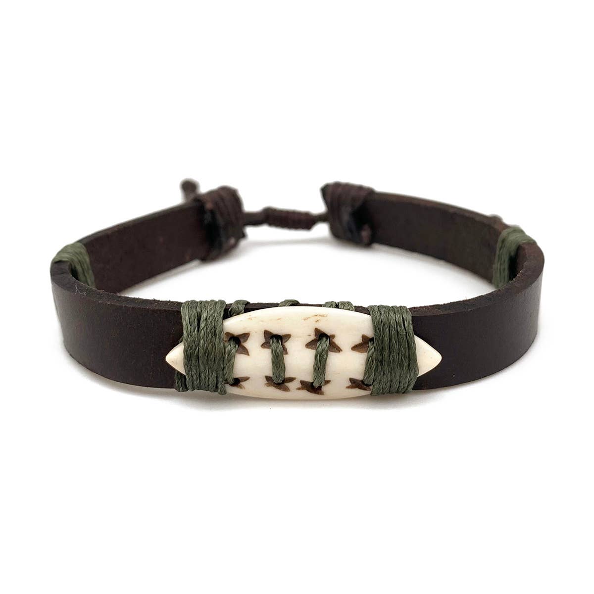 Aadi Bone Bead On Brown Leather Pull Tie Men's Bracelet