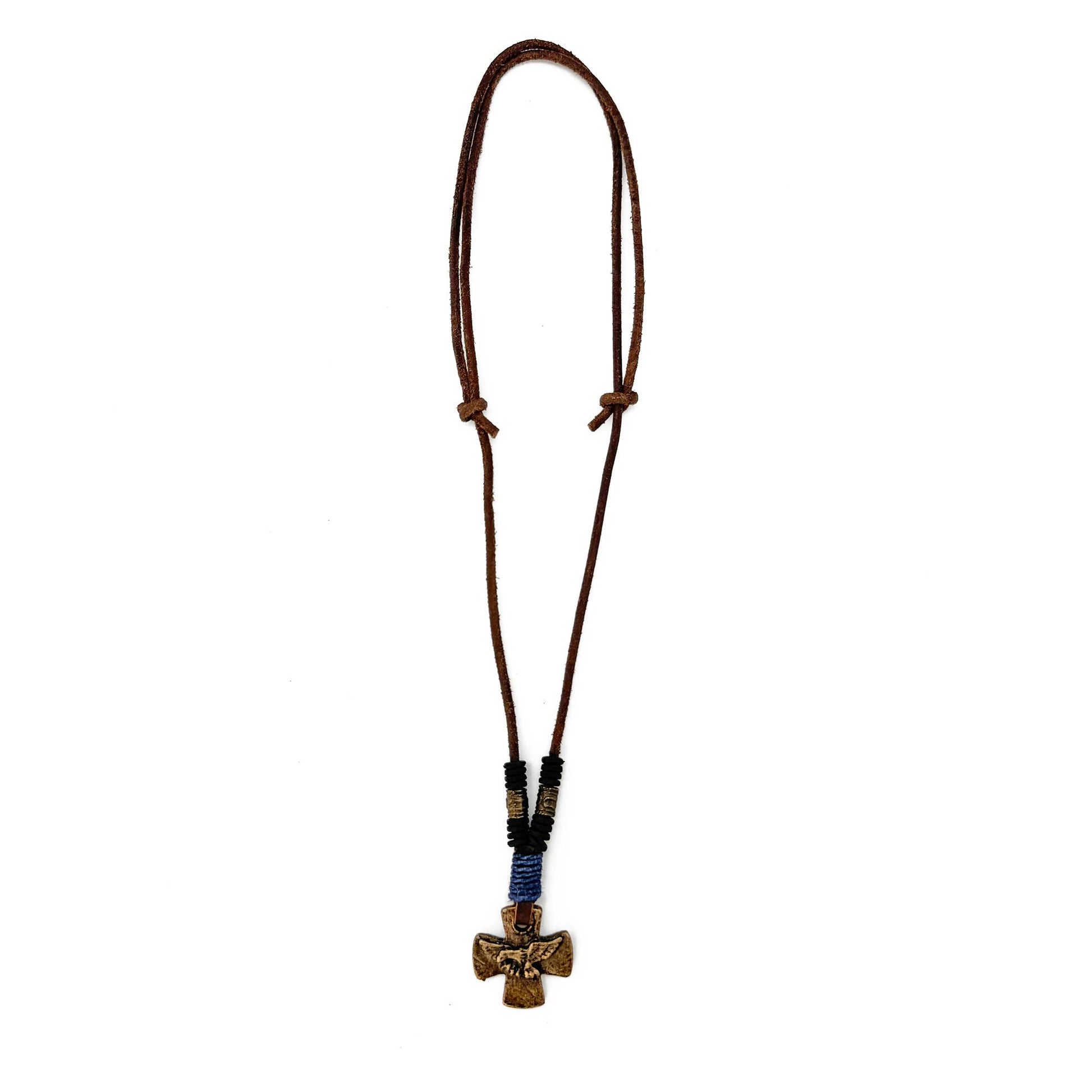 Embrace the powerful symbolism of faith and freedom with the Aadi Eagle’s Faith Necklace. This striking piece features a beautifully designed cross pendant, intricately combined with an elegant eagle motif, representing strength, courage, and spiritual elevation. Crafted from high-quality materials and suspended from a durable leather cord, this necklace harmonizes rugged style with profound meaning. The eagle's soaring wings and the cross symbolize a commitment to one’s beliefs and the aspiration to rise above challenges. Whether worn as a personal emblem of faith or as a bold fashion statement, the Aadi Eagle’s Faith Necklace is a unique accessory that inspires confidence and resilience in every journey.