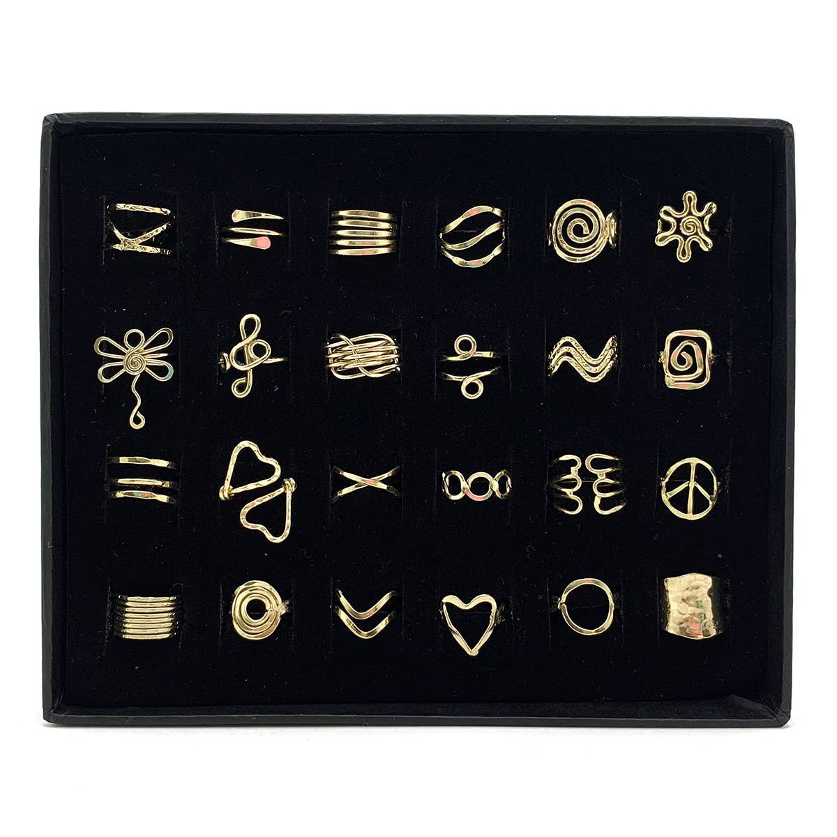 24 Assorted gold-plated brass adjustable rings. No display included.