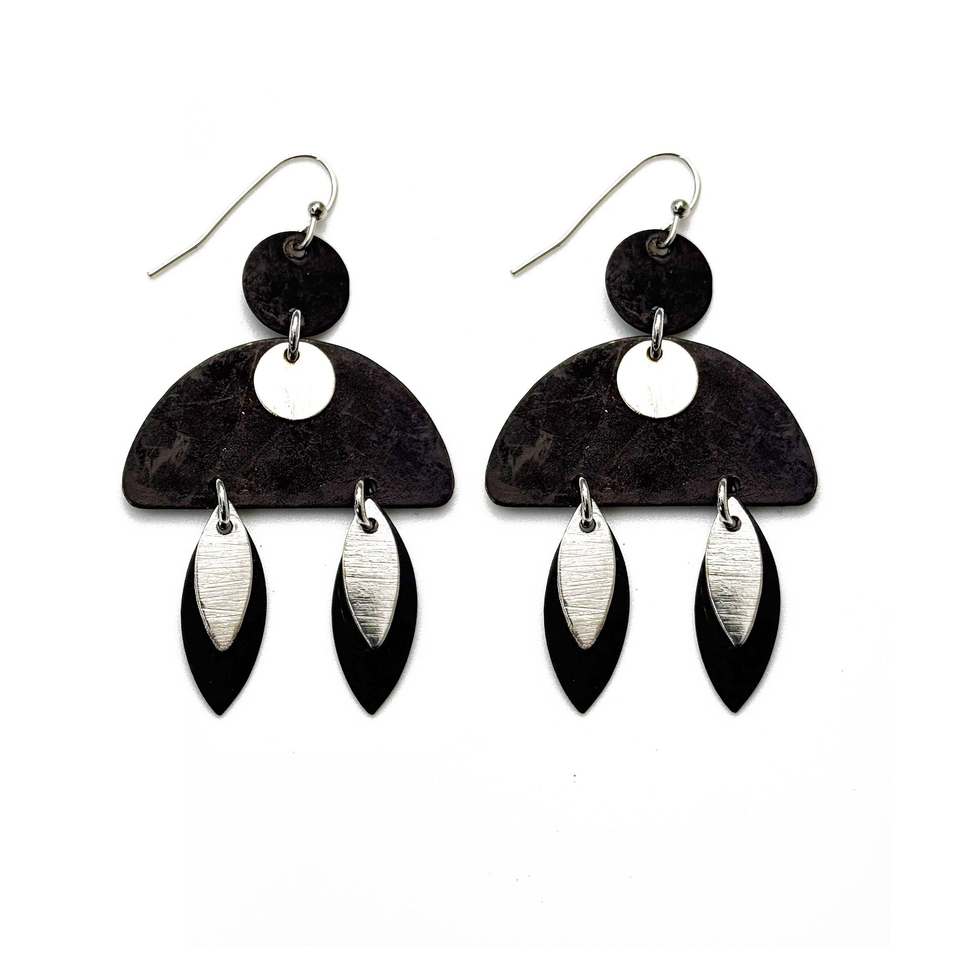 Handcrafted Black Patina Abstract Leaf Dangle Earrings
