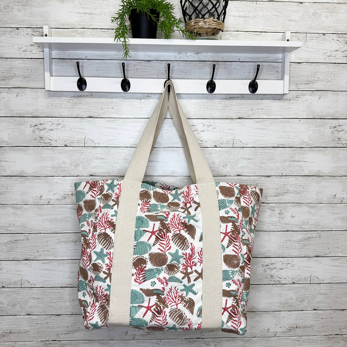 Handcrafted Canvas Bag with Block-Printed Coral Reef