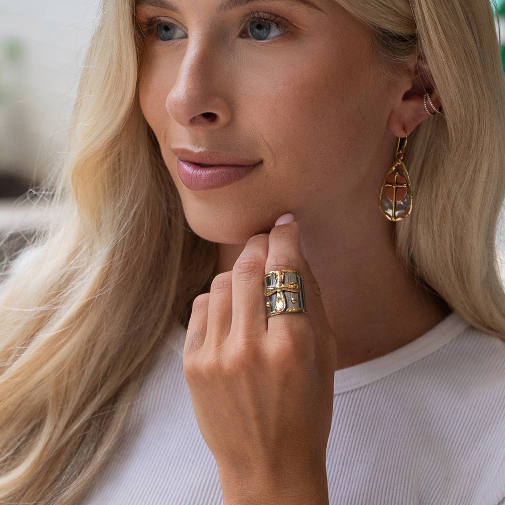 Handcrafted Cross Mixed Metal Ring