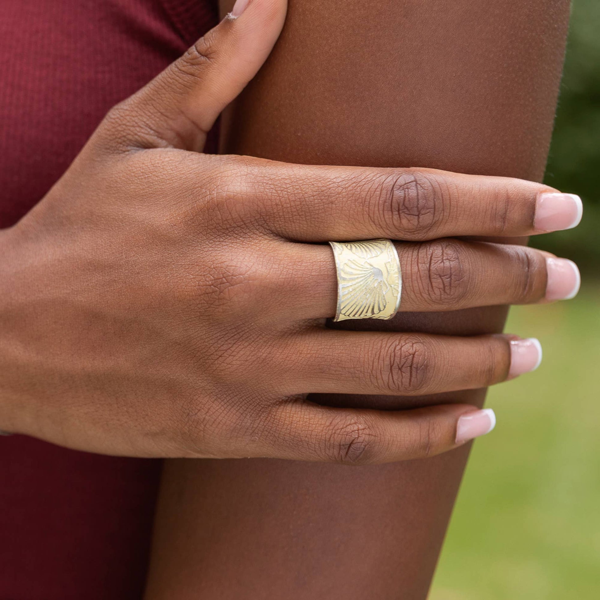 Handcrafted Pale Yellow Scallop Patina Ring