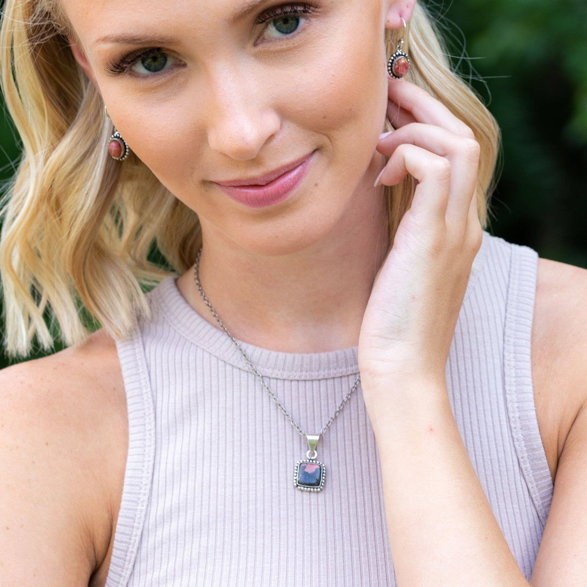 Handcrafted Semiprecious Small Stone Necklace - Rhodonite