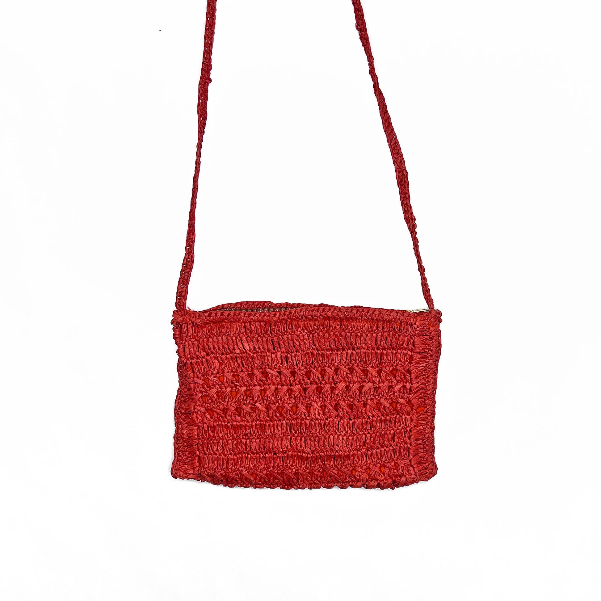 Lola crossbody bags are woven raffia and has a zipper and inner lining.