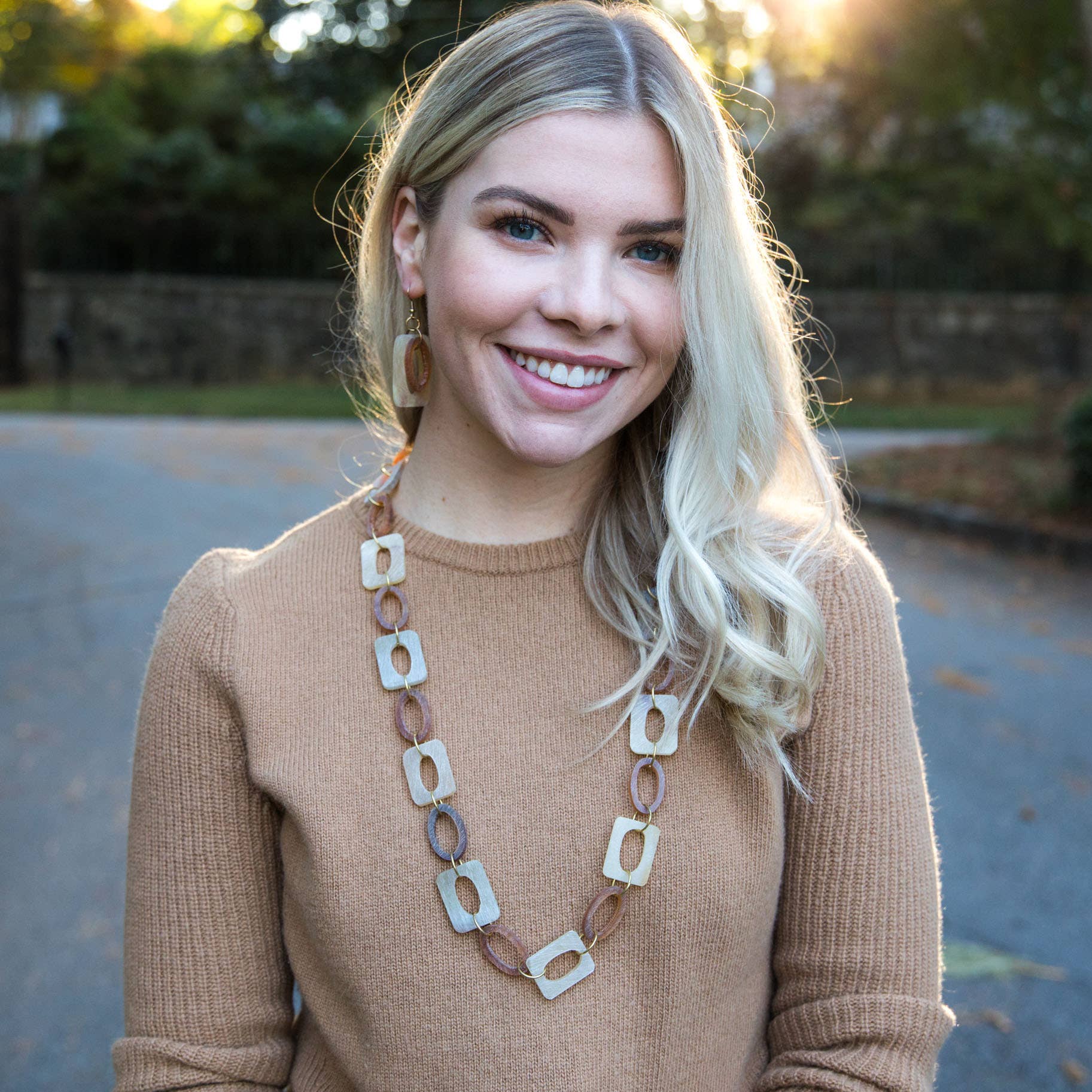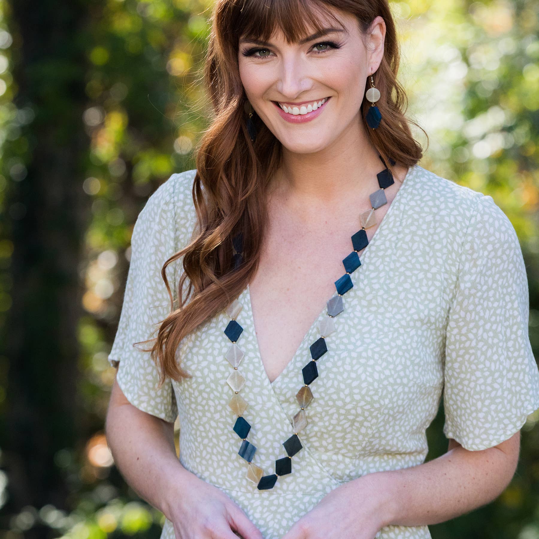 Our Omala collection is made from ethically sourced, upcycled cattle horn. No animals are harmed for this jewelry. Cows are sacred in India and their horn is repurposed after they pass away of natural causes. Dyed with natural dyes, this creates a unique and all natural piece of jewelry.