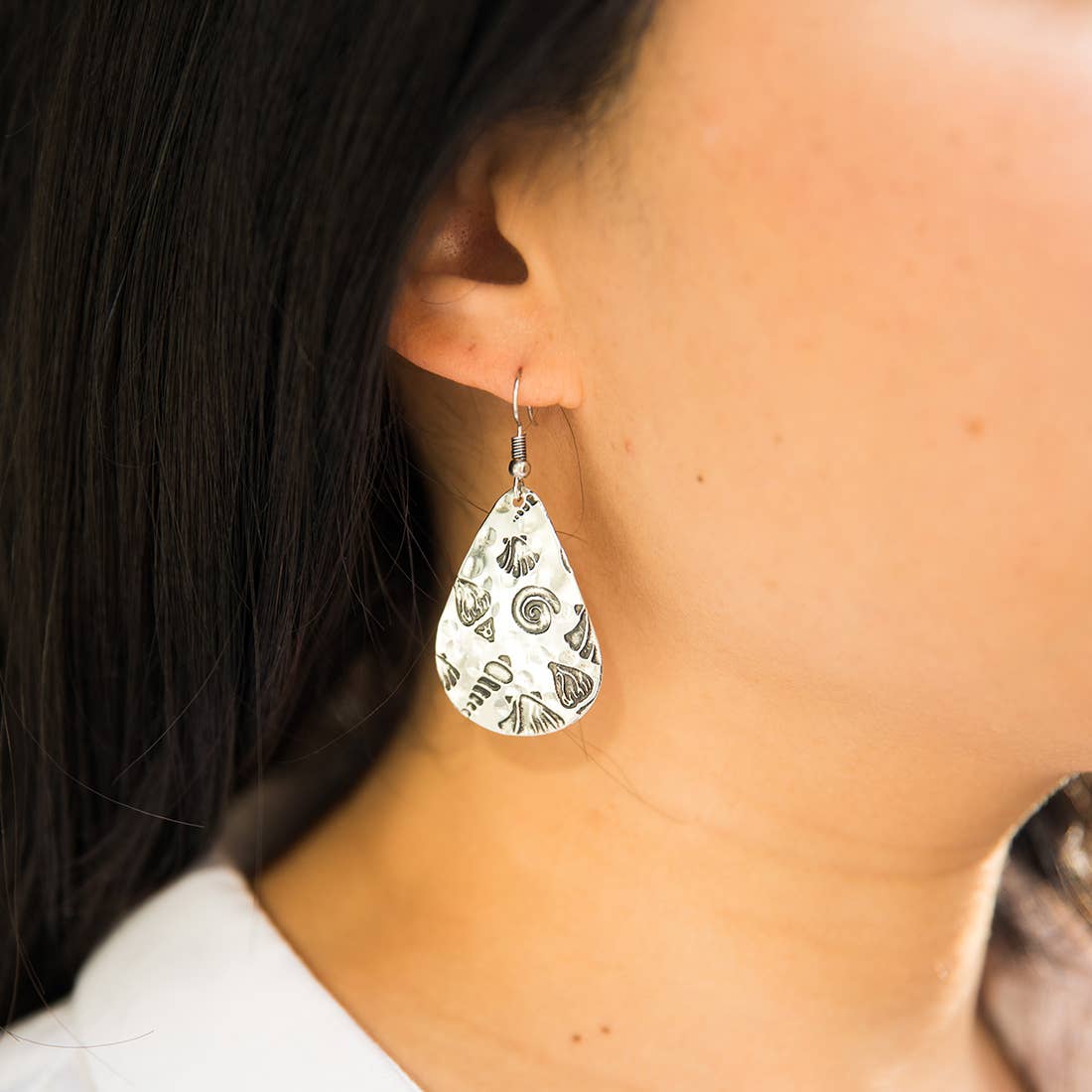 Shells Silver Engraved Earrings