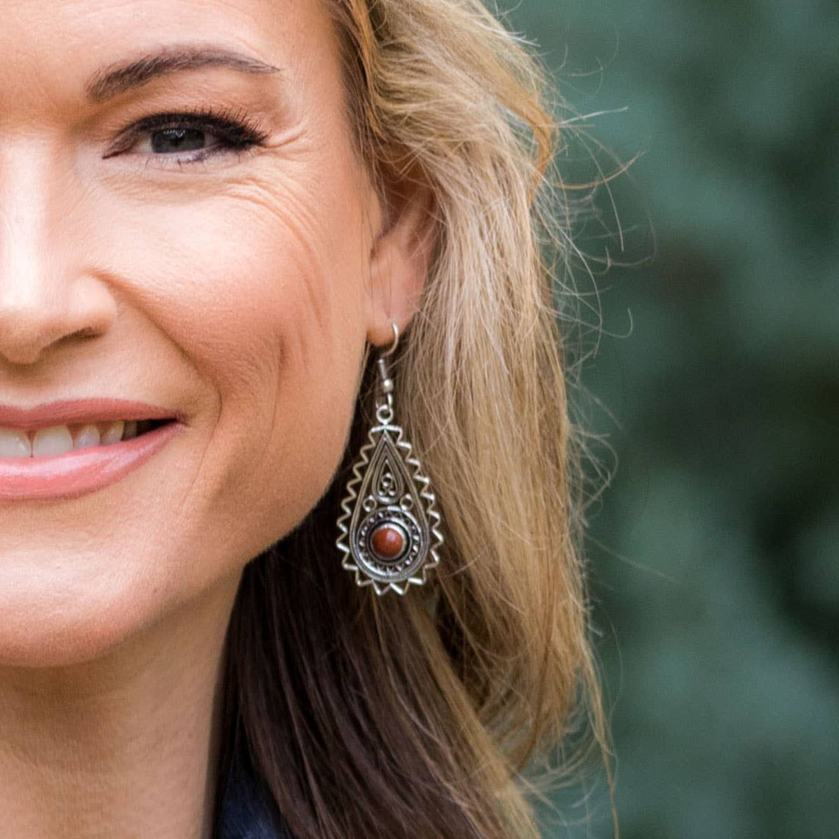 Prepack includes 24 pairs of Tanvi earrings with semi-precious stones ($9 each) and a wooden spinner display (DW44, $39).